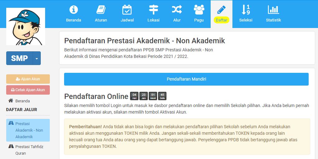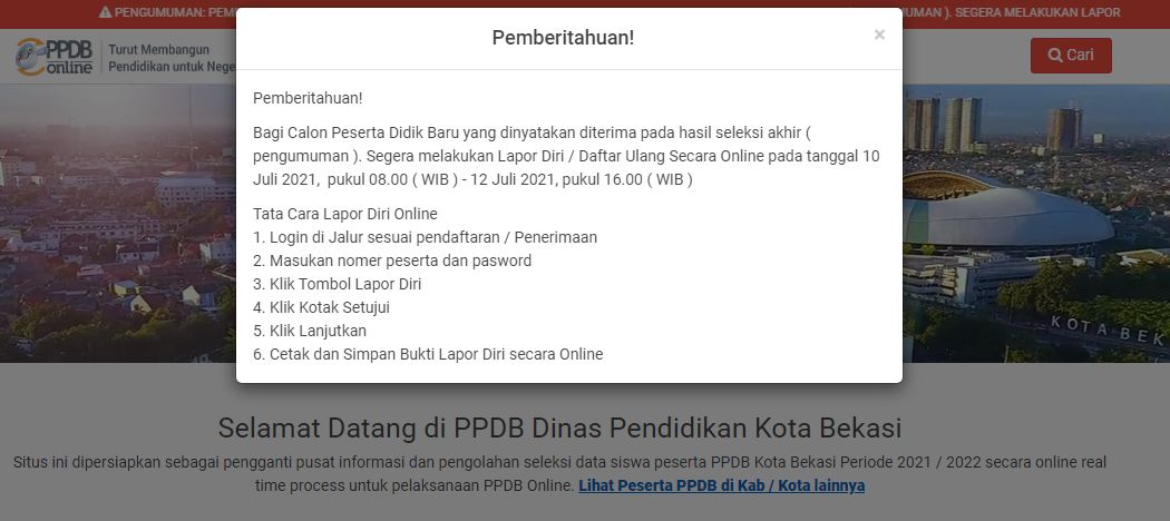 - Pengumuman PPDB Online 2021 dapat dilihat di website http://bekasi.siap-ppdb.com
