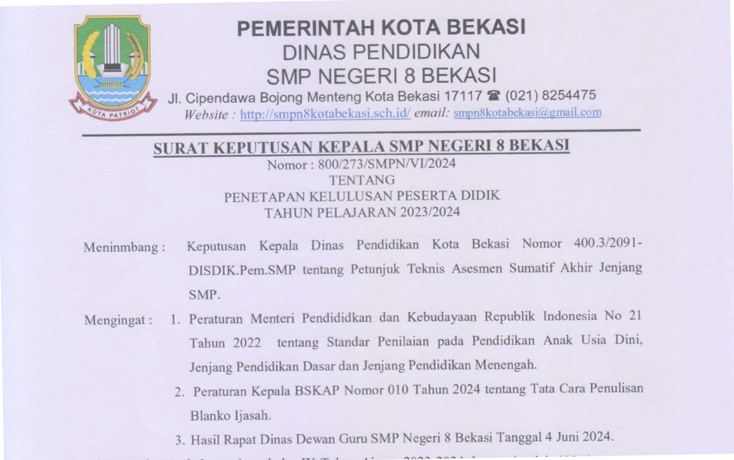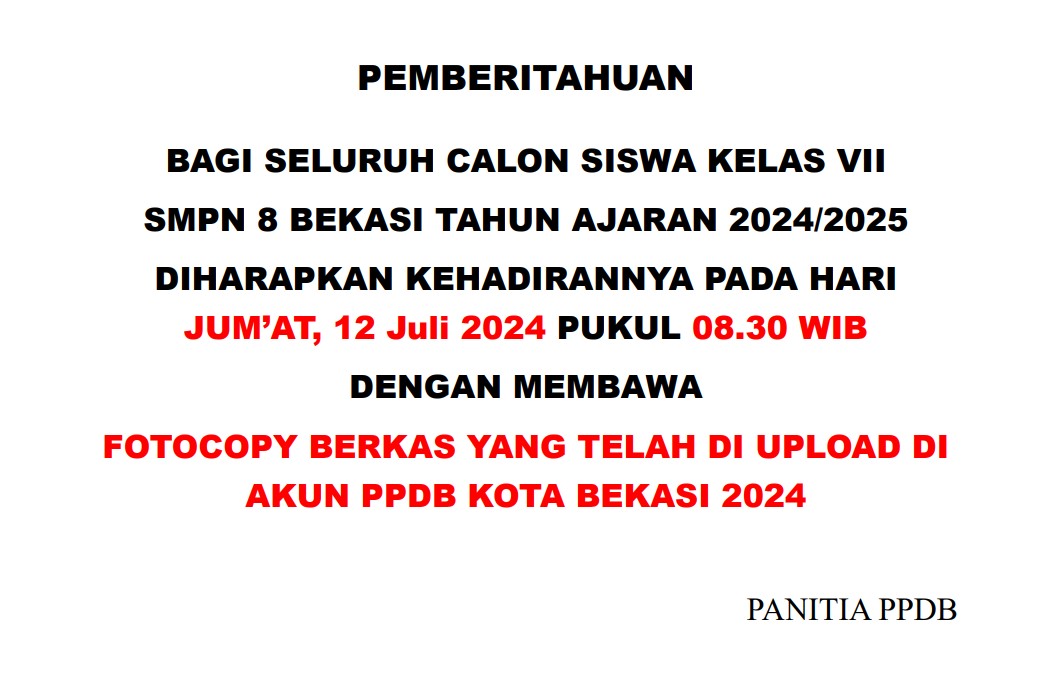 - Pemberitahuan PPDB SMPN 8 Bekasi 2024